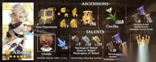 以上就是233乐园为大家整理的关于《原神》阿贝多天赋升级材料/等级突破材料一览的全部内容,希望能对大家有所帮助,祝大家游戏愉快!