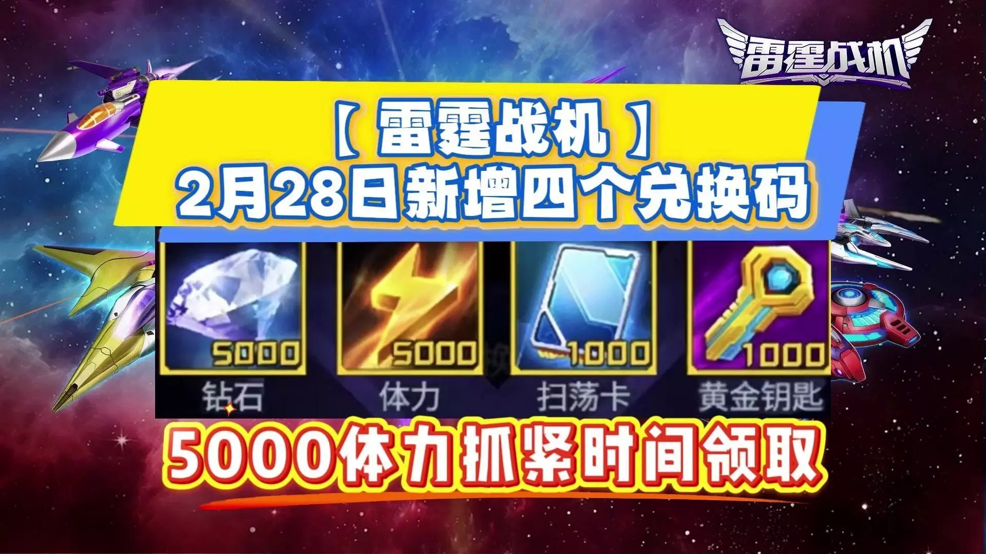 【雷霆战机】2月28日新增四个兑换码 5000体力抓紧时间领取