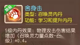 内丹选择:高级内丹优选龙魂玉,低级内丹优选御法、迅敏、了然,勇武、神威少侠可新增镶嵌奇袭,多维度提升法术防御面板和法术减免能力。 技能搭配:高级神佑复生+高级必杀+高级偷袭,综合提升输出能力。 应用场景:推荐在多法宠、多法系输出门派的场合召唤使用。 补足物理抗性短板