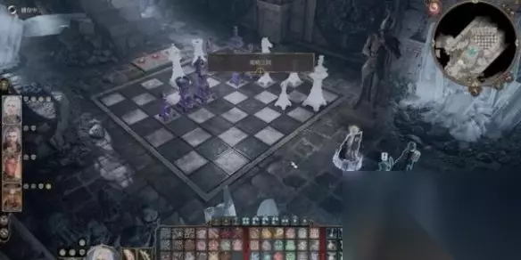 战略之间——以进门时的方向为前方,依据下文提示操作白棋,在三步内将死黑棋即可完结。