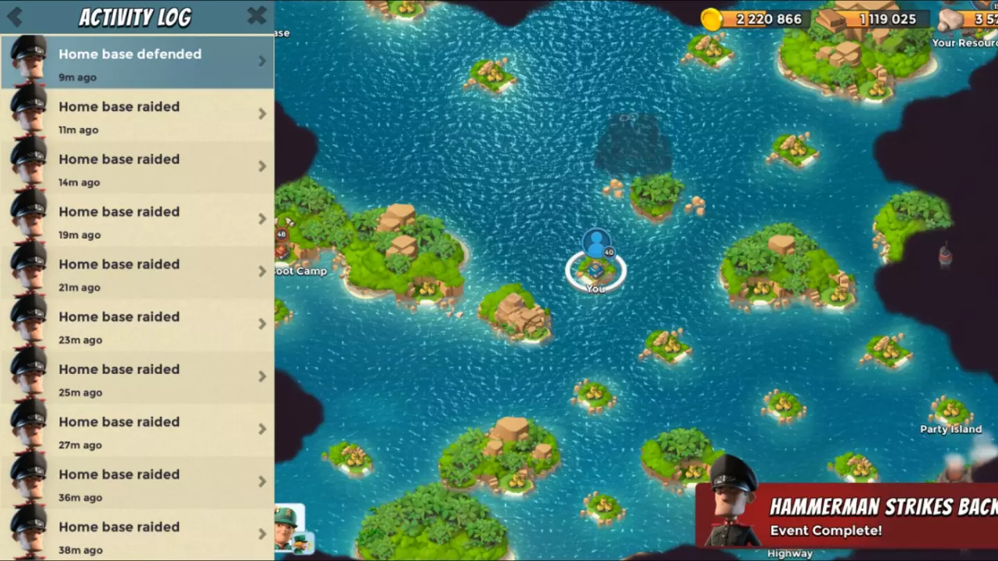 这是策略游戏《海岛奇兵》的相关内容,展示了单机速本号4.20防御哈莫曼的过程,分享了资源建筑厚血、卡片加成的作用,以及利用厚血小怪刷怪、用吸血巨加避免被投弹消耗等防御技巧。