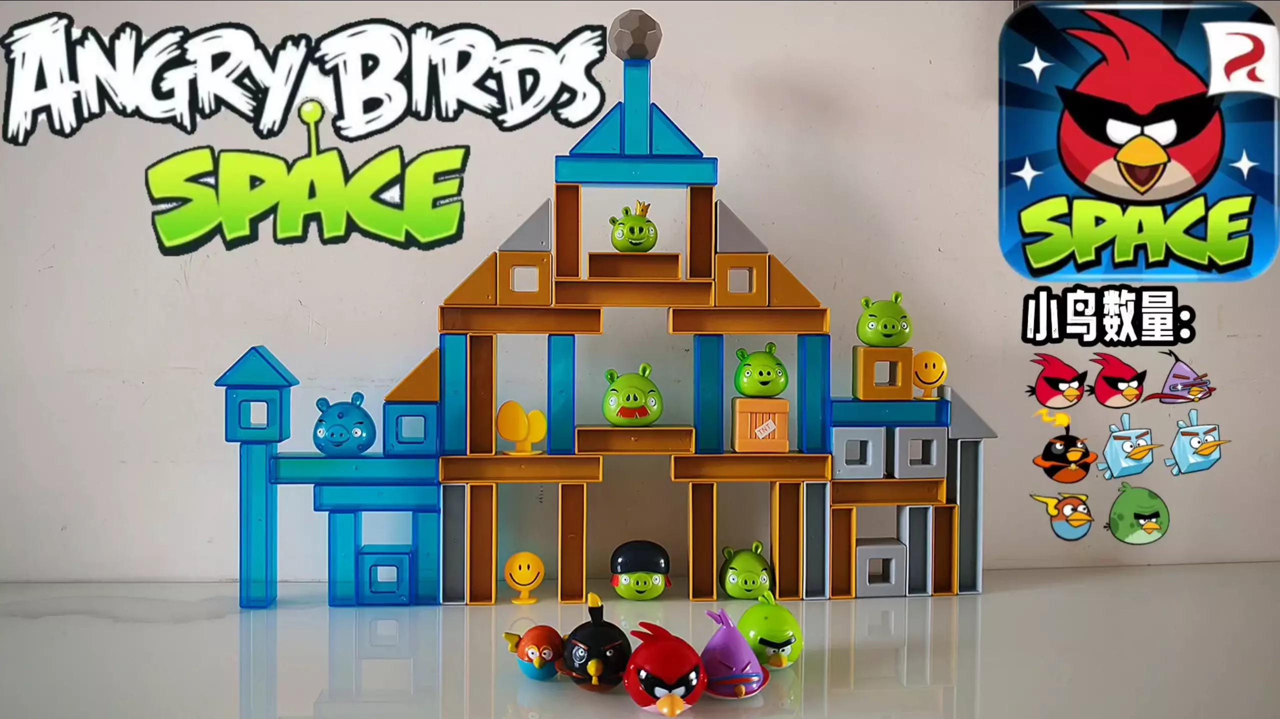 这是美泰出品的愤怒的小鸟主题玩具展示,搭配knex人仔,还原了游戏里猪猪抢鸟蛋、小鸟夺回鸟蛋的场景,展示了不同类型的猪猪和小鸟玩具,还有搭建的场景装置。