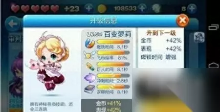 百变萝莉 满级:120级(暂时升级到60,后面钻石没钱加了。) 技能:神秘召唤技能,三段跳 如何按照满级百变萝莉的属性技能来看,技能的冷却时间大概是10秒-15秒,而技能的生效时间大概会在8秒,可想而知每隔10-15秒就可能触发一个技能,这是多么BT。 以上就是小编为大家带来的天天酷跑百变萝莉满级属性攻略详解,希望帮到大家。 233乐园站所有文章资讯、展示的图片素材等内容均为注册用户上传(部分报媒/平媒内容转载自网络合作媒体),仅供学习参考。用户通过本站上传、发布的内容的知识产权归属用户或原始著作权人所有。如有侵犯您的版权,请联系我们反馈!本站将在三个工作日内改正。