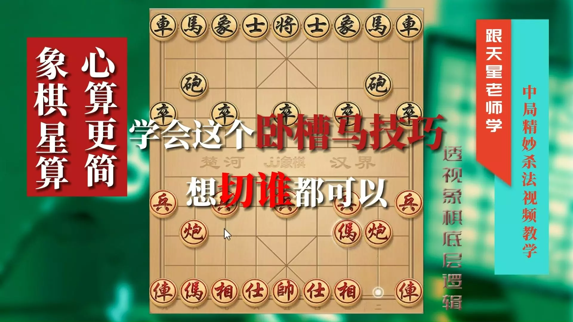 这是一则象棋教学解说,专为象棋零基础学习者打造,讲解象棋万能先手布局公式,只需5步就能掌握一个象棋开局,帮助新手快速上手象棋开局布局。
