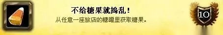 神圣之名成就需要达成11个小成就即可获得 1、不给糖果就捣乱! 达成条件:如字面,任意一座旅店的糖罐里获取糖果。在任一旅店老板身边的糖罐中获得“一把糖果”即可轻松拿到成就。