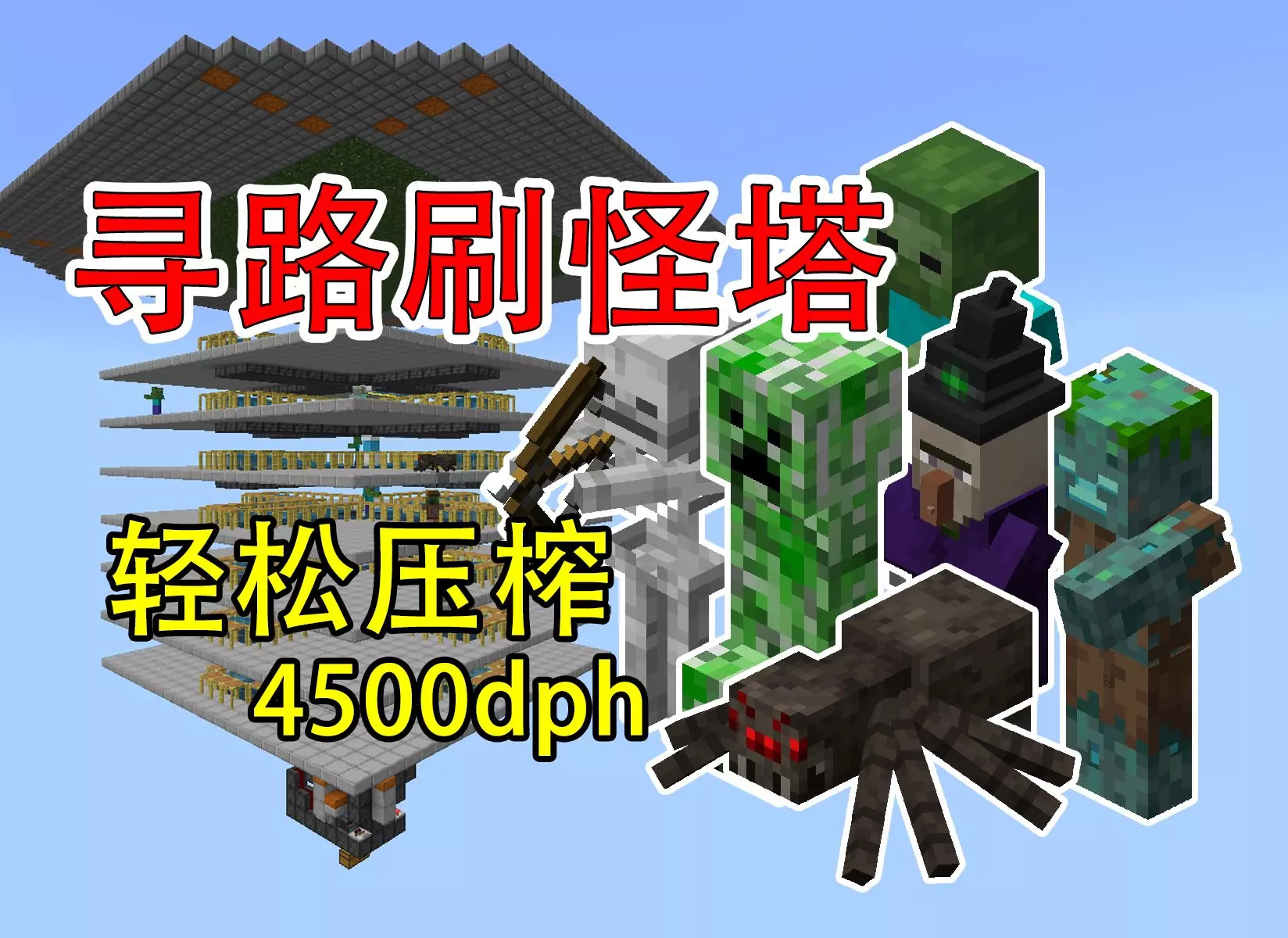 沙盒游戏 我的世界:寻路刷怪塔,开荒必备,轻松压榨!