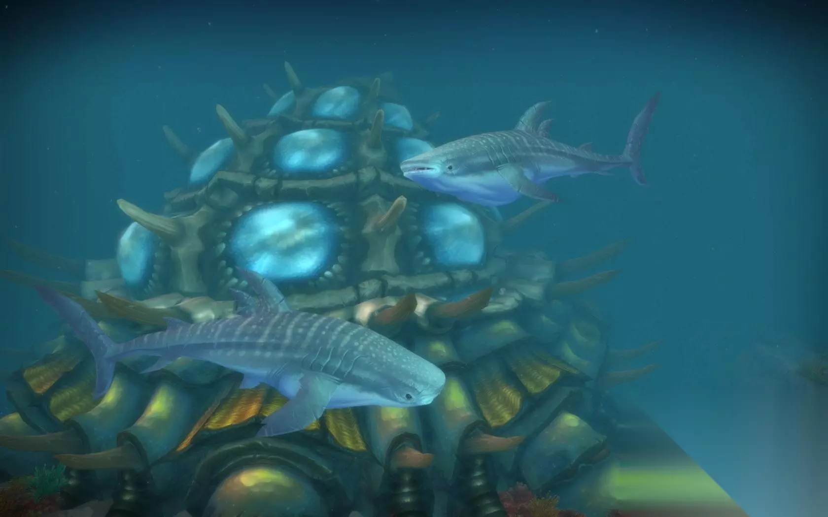 鲸鲨 奈瑟匹拉 在瓦斯琪尔的海底,还坐落着一些像奈瑟匹拉一种巨兽,就模型的大小而言鲸鲨在它们的面前也是不值一提。从远处看,奈瑟匹拉像一个甲壳虫式的建筑,而跟随任务进入它的内部之后,才发现这是一个活物,而且被上古之神的爪牙和娜迦们占领,成为他们的基地。