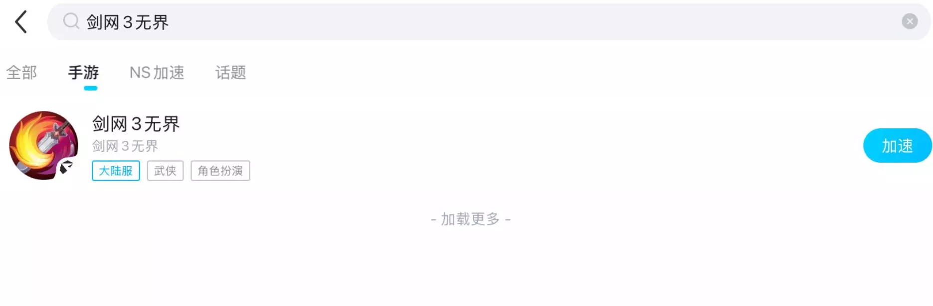 打开biubiu手游加速器,登录后进入主界面,搜索“剑网3无界”。点击启动加速后,如果游戏安装包已完整,可以直接打开游戏。