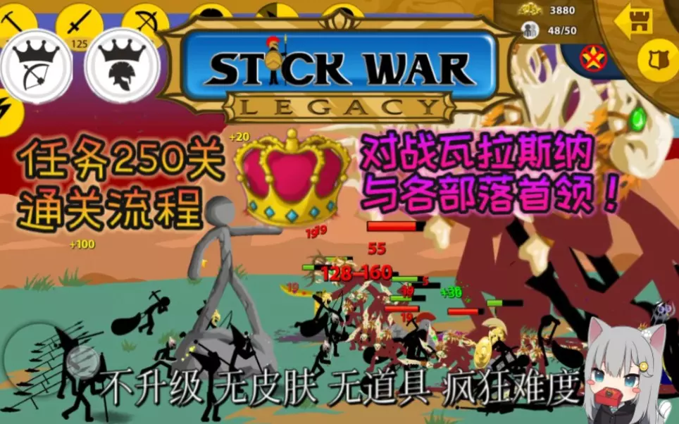 这是一篇关于策略游戏《火柴人战争:遗产》老版本的内容,展示了该游戏困难模式的全流程通关相关画面,该版本可从浏览器找到,包含资源采集、战斗、兵种升级等游戏环节。