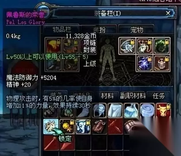 这是一把55级粉光剑,放在这里不仅因为它价值高,而是因为当年本猫真的爆出了这个光剑,我清晰的当初卖了7400W,折合成小钱钱也有大几百块了。当初爆出来的时候真的是惊喜到全身发麻。那种惊喜的感觉在后来的游戏中再也没有过了。 六、佩鲁斯的荣誉