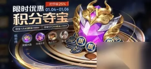 王者荣耀积分夺宝幸运值多少满 王者荣耀积分夺宝打折结束时间: 1、积分夺宝打折活动结束时间是1月6日23:59,活动期间单抽:45荣耀积分(原价60荣耀积分)、五连抽:200荣耀积分(原价270荣耀积分)。 2、积分夺宝活动中每天最多只能抽80次,每次抽取都将累计1点幸运值,幸运值达到361必出荣耀水晶。 3、荣耀水晶可以在荣耀商店里边换取武则天、海洋之心、天鹅之梦等稀缺肌肤,是游戏中最值钱的道具。 【小编推荐】专区入口 || 视频站入口 || 体验服申请入口 || 全民竞猜赢好礼 【新英雄爆料】| 司马懿 || 瑶 || 孙策 || 新英雄:囚徒/书圣/瞬 | 【新皮肤爆料】| 李白团战皮肤:敏锐之力new || 诸葛亮团战皮肤:掌控 || 典韦穷奇皮肤 Hot!! | 王者荣耀最新攻略 赛季段位继承表 每日一题 边境突围玩法攻略 体验服爆料