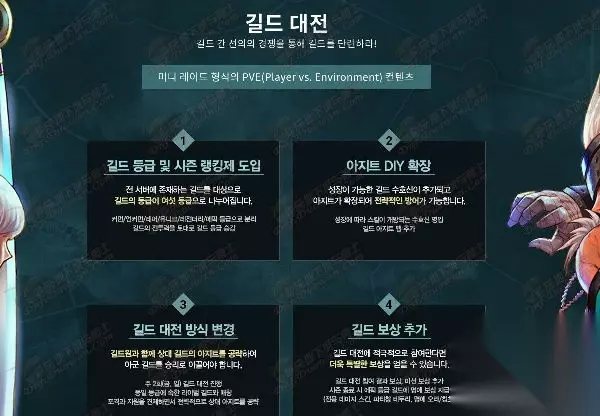 (1)公会阶级及排行制度 公会阶级分六种 普通/高级/稀有/神器/传说/史诗 根据公会战斗力提升阶级 公会场地扩展 (2)公会场地扩展 新增成长型守护神 扩展公会场地可以战略性的防御 根据成长解锁技能的守护神 新增公会场地地图 (3)新增公会场地地图 公会大战方式调整 攻略对方公会的场地 每周二次(星期五,星期日) 匹配相同阶级的公会- 牵制炮击支援以卓越的战略攻略敌人基地 公会大战奖励 (4)公会大战奖励 伤害皮肤,组队栏描边(特效),荣誉光环,称号 传说副本艾肯 DNF新增传说副本艾肯破坏的神殿怎么玩,在DNF12月24日韩服冬季发布会上,公布了艾肯破坏的神殿的相关内容,想必大家十分感兴趣,那么一起来看看艾肯破坏的神殿介绍吧。 3、新增传说副本 艾肯:破坏的神殿 (知道远古已经满足不了你们这些抖M了,艾肯就是卡西利亚斯的故乡)