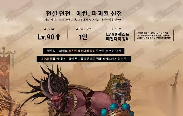传说副本艾肯:破坏的神殿 入场等级:90 人数:1人 奖励 奖励:90级任务传说装备- 除了武器都是套装,比85级任务传说强30%,准备以往不同的特化系统(类似于安徒恩的任务传说在安徒恩副本中会有一些特效,大致是这个意思)。