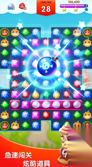 它的玩法比较轻松,且自由度高,你只要将所有的宝石连成一条线就可以实现消除。另外每个关卡的挑战难度系数不高,只要认真去发现其中的规律就能轻松通关。它融入了很多创意的玩法,进一步提升了可玩性,同时十分考验个人的决策能力。游戏还植入了许多壮观的场景,很好激发了每个人的战斗热情。最特色的地方在于你可以与其他人进行交流,互动效果直线提升! 高速下载 普通下载 优先233乐园APP下载 2、《宝石爆破》