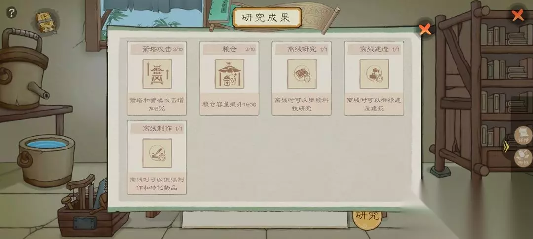 天工院没啥好说的,其中最主要的就是三大离线收益,顾名思义就是线下产生的收益,把这三个研究完之后,我们就有了离线系统 游戏前期都是线上收益,就是你必须时刻在线上才能产生收益,一旦离线就会停止操作 但世界到八级,我们有天工院之后,可以进行研究离线收益,来减少肝度了 离线收益分为三种离线研究离线制作离线建造 1.离线研究,就是你在线上研究科技,到了线下也能继续接着研究