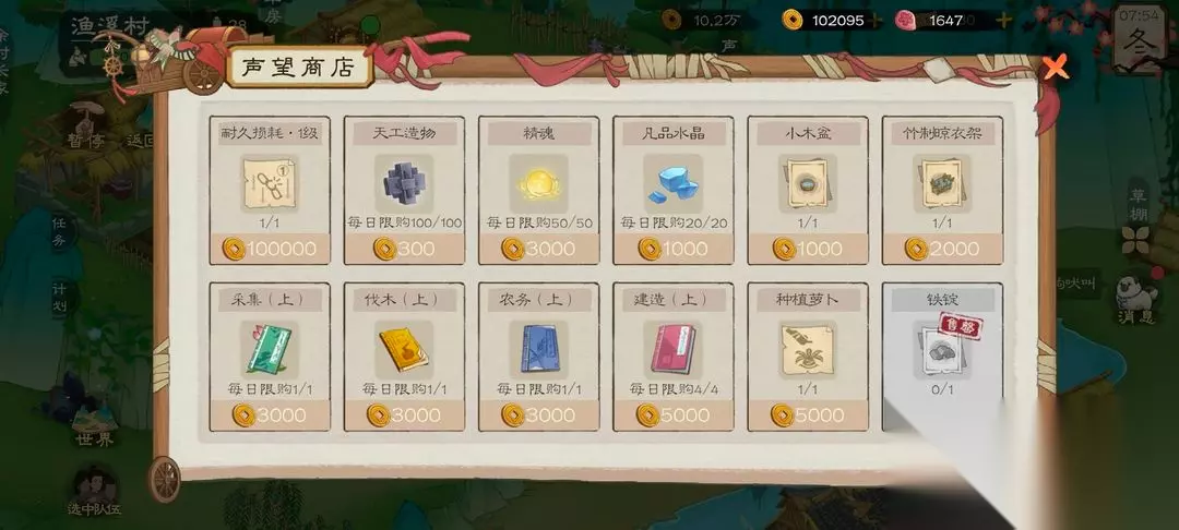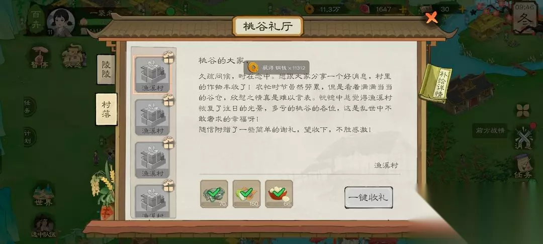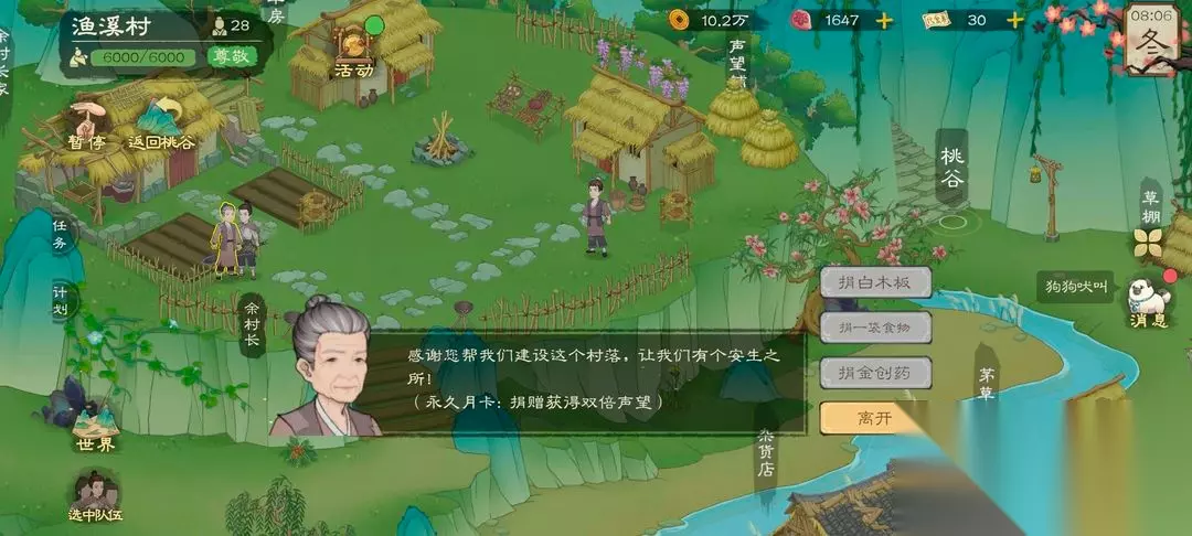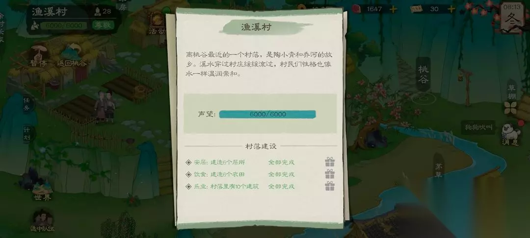 这两个都能获取到大量声望,声望最高就是6000鱼溪村的物资也可以采集哦