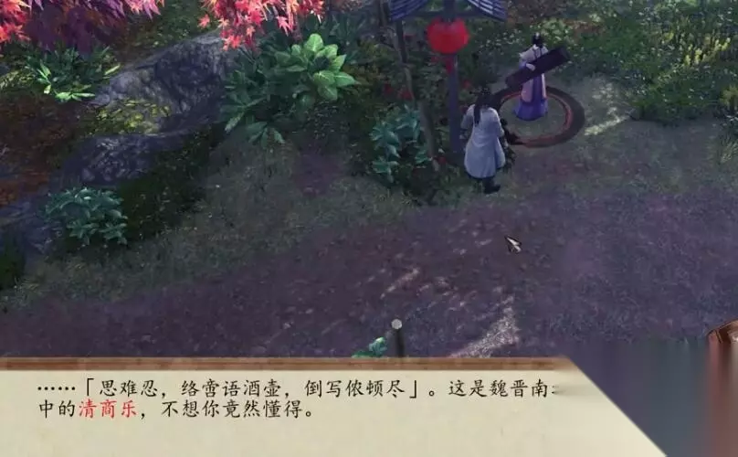 三、思难忍,络啻语酒壶,倒写侬顿尽 对应:琴 (这里对话会说道:丢失了一本《仙音雅乐》,是之前的家猫“阿吉”叼走了。《仙音雅乐》这书后面应该是要交给萧复。)
