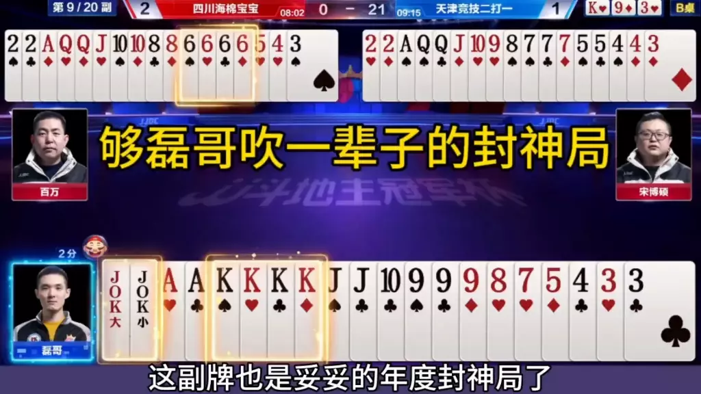 安徽星尘的磊哥在JJ斗地主冠军杯赛事中满血回归,状态拉满,单局内打出四副精彩的上电视牌局,凭借出色发挥帮助安徽星尘大胜重庆一针见血战队。
