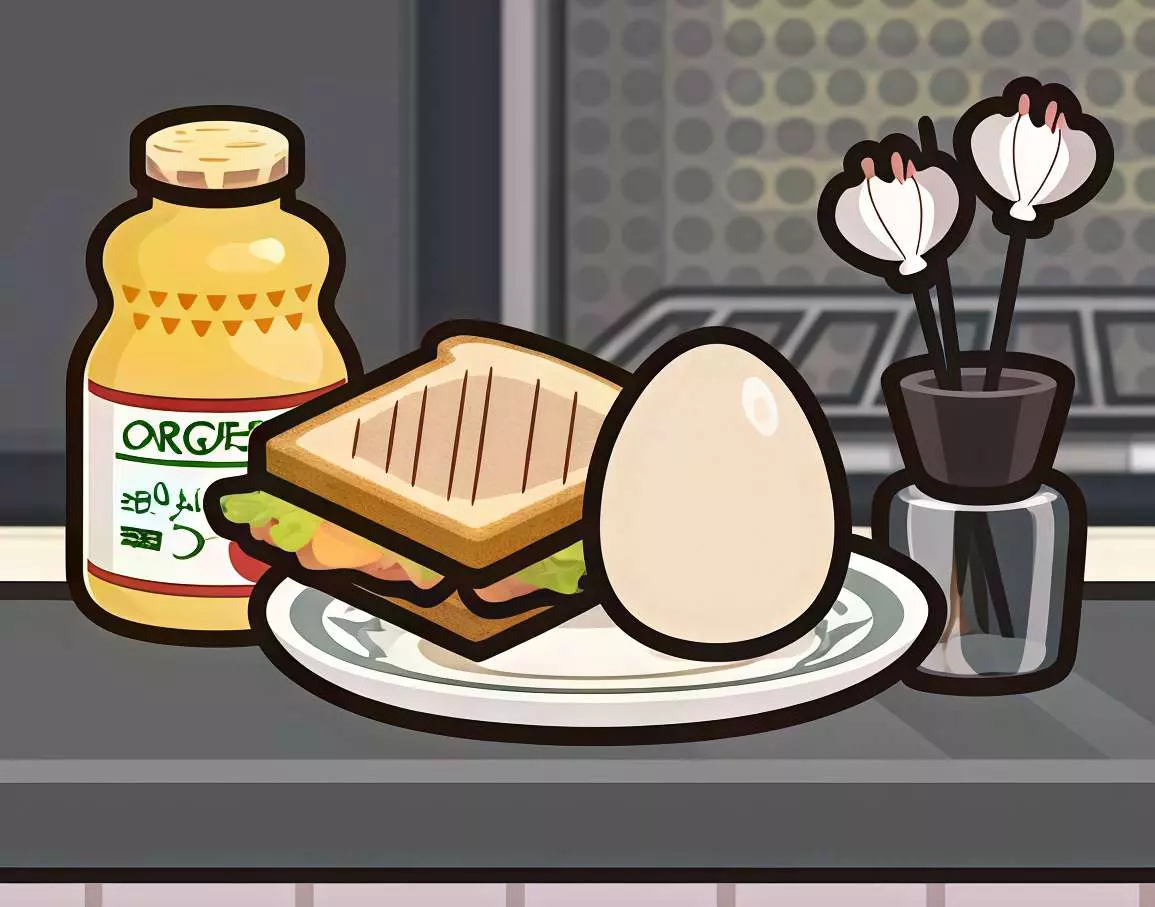 ⑥健康早餐🌯 配方: 鸡蛋三明治🥪,鸡蛋,苹果汁.