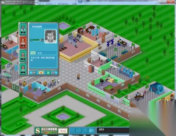 因为第二关自带的土地面积比较小,所以我们建完这些基础设施之后大概率是位置不够用的状态,这个时候可以选择买一块地,在这块地皮里面可以建一个研究部门,把药品研究和改良的数量调整至百分之四十,专项研究调整到百分之二十。充气机可以就放在门口这种人流量比较大的地方,舌头治疗机则可以选择放在充气机旁边,这边我们选择再造一个病房,可以尽量造大一点,当做住院部使用,毕竟已经买了这么大一块地,不用就浪费了,因为病房里的病人容易不开心,所以暖气和植物都是必须要的,随后再雇一名护士,最后雇两名清洁工。