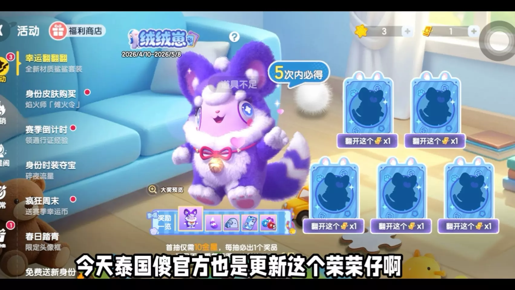 玩家分享《太空杀》幸运翻翻翻活动抽赛博之影拍桌动画的经历,原本以为保底5元,实际发现该拍桌动画的保底花费比手册还高,玩家已充值3次,仍未抽到目标动画。