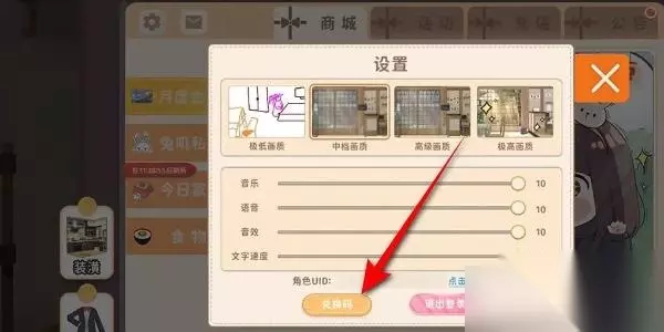 3、然后在设置页面就能看到兑换码的功能,进入到兑换码页面。