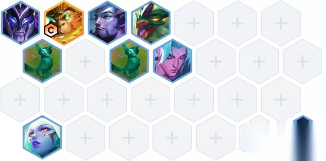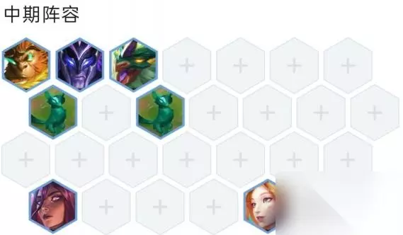 4,阵容站位如下图,潘森亚索在猴子旁边,后排可以不吃玉龙,站位不需要太抱团。