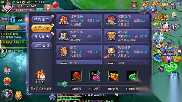 穿越,就从现在!《寻找前世之旅》电视剧同名手游现计费删档测试火爆进行中,玩家的热情再次证明了游戏的品质!虽然这次的测试时长只有4天,但是每天还是不断的有大批玩家加入到游戏,我们也是细心的为《寻找前世之旅》手游的玩家准备了每日必做的一些游戏玩法盘点,让穿越者在开心体验的同时加速等级经验的提升! 每日必做中包含15轮日常任务、雕像互动、帮会任务、藏宝图、答题、竞技场、货物装船、悬赏任务、阵营任务、周跑环以及探险。 雕像互动 玩家可以在主城对最高战力的玩家雕像进行献花操作,每日有三次机会。