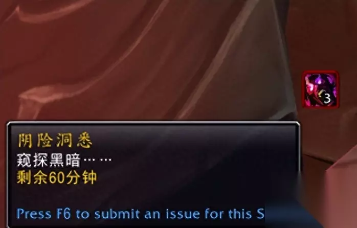 ”阴险洞悉“debuff达到三层会触发屏幕提醒文字:你听到北部的神龛处传来黑暗的嘶鸣声。