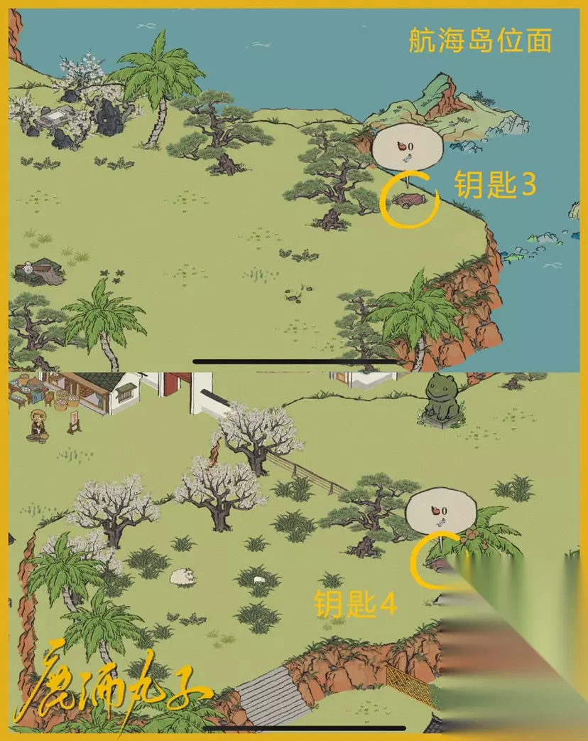 江南百景图周年庆限时探险宝箱位置宝箱和钥匙一半在内陆,一半在海岛 宝箱一: 第一个宝箱的位置最难找,需要通过自在熊棋子进入