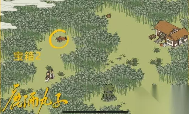 路线是:竹林入口-北-西北-西-西南-东东-东东东 宝箱二: 在下图的竹林里面
