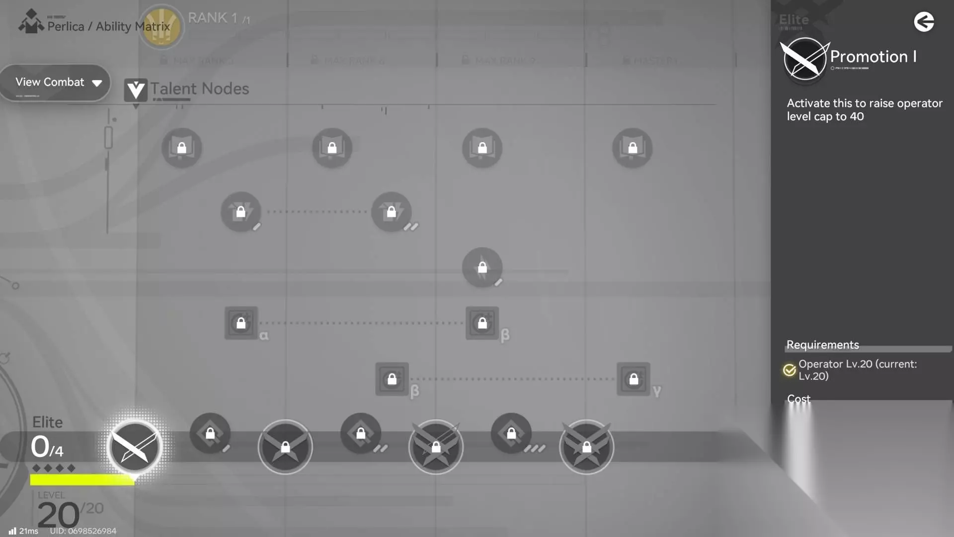 为了晋升干员并使其能够从 20 级提升到 30 级,你需要原型磁盘、粉色牛肝菌和终末币(T-Creds)。下表显示了晋升干员所需的材料数量。 终末币通过探索和任务获得,也是完成每日任务的奖励。 完成空间协议以获取原型磁盘