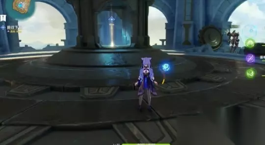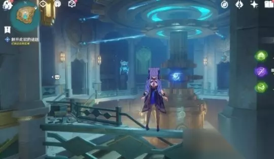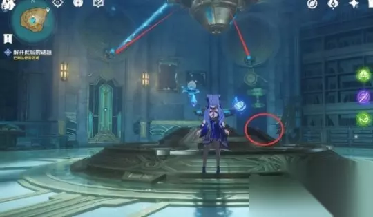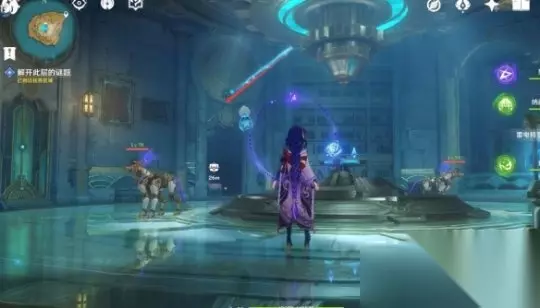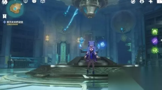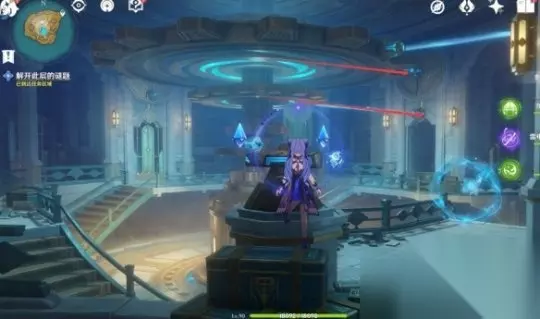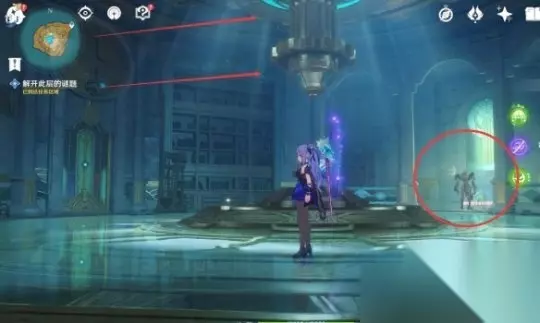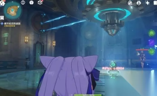 在下层从门内的电梯出来后,请先打败章鱼敌人,然后使用机关旋转晶石中心交互,然后调整头顶机关的高度。