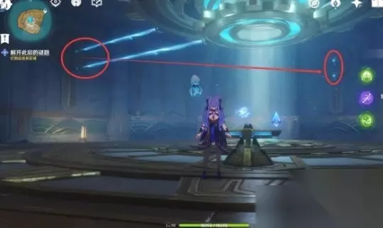 在这个房间里,有两扇需要两根激光同时照射才能打开的门。为了解决这个难题,可以利用水母的力量来交互机关。在机关处可以找到一件名为“根源之轮”的物品。使用它,可以让最高处的激光照射到需要的位置,从而完成任务。