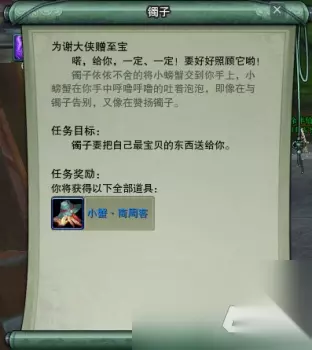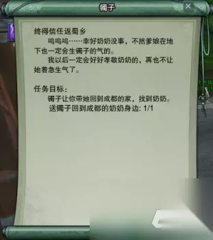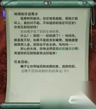 交掉任务后继续跟小姑娘对话,她会要我们帮她买一个糖葫芦来换取她的信任,还指定就要成都郭佳宝的糖葫芦: