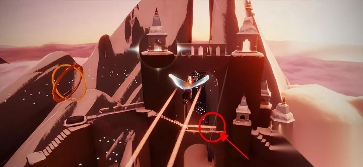 8.第二个地点【霞光城上层的冥想】指的是城堡的顶部。玩家以这个位置为标准来看到我白圈的位置。