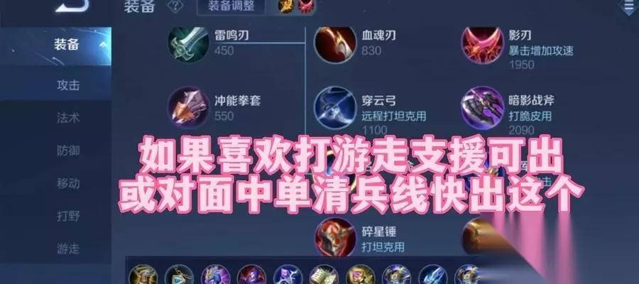 合理的装备选择 1.法师通用装备 炽热支配者:提供生命值和法术强度,主动效果可以解除控制,适合辅助角色。 虚无法杖:增加法术穿透,让王昭君的伤害更加显著。 2.辅助专属装备 救赎之翼:提供生命值加成,关键时刻可以使用主动技能为队友提供护盾。 风之轻语:增加移速和法术穿透,提升王昭君的辅助能力。 3.选择性装备 炽热法杖:增加法术强度和冷却缩减,适用于需要频繁释放技能的场合。 秘法之靴:提供移动速度和法术穿透,增强王昭君的灵活性和输出。
