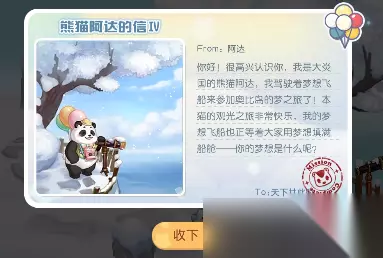4、第四张明信片信息如图所示,奥比斯雪山的任务也就结束啦。