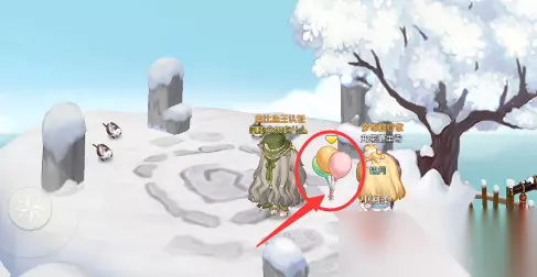 3、最后上到山顶之后我们点击旁边的气球即可,如图所示。