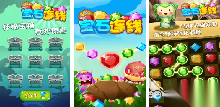 在钻石碰对碰游戏中,以轻松休闲为基调,通过萌系设计与剧情互动降低玩家门槛,钻石形象采用圆润Q版造型,消除时会做出眨眼、弹跳等拟人化动作,搭配卡通音效营造出童话般的氛围,核心玩法除常规对对碰外,还加入任务链系统,玩家扮演的冒险家法雷尔需完成村长委托。 高速下载 普通下载 8、《宝石连线》
