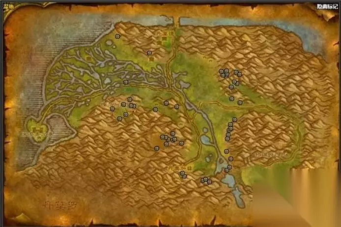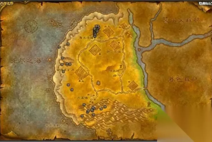 2、西部荒野,有40个锡矿点 分布位置: