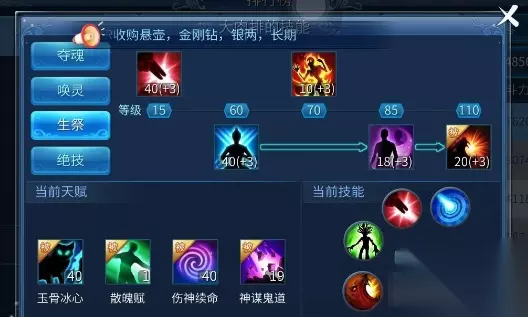 1. 白骨令:可召唤骨灵为自己战斗,造成敌人单体物理伤害,青木松的前置技能,可以点满。 2. 青木颂:召唤木灵为自己战斗,需要前置技能白骨令,青木颂可造成敌人群体法术伤害。必须点高。 3. 厚土颂:可召唤石灵为自己战斗,前置技能青木颂,造成敌人单体物理伤害,比骨灵的攻击高,必须点高。 (白骨令要点是为了升级青木颂和厚土颂,所以要点高) 4. 将军路:增加鬼灵的攻击,聚魂引的前置技能,点高,一是为了升级聚魂引,二是异人主要靠宝宝输出,增加攻击很必要。 5. 聚魂引:点到35级别即可,因为手游和端游不一样,只能召唤四个鬼灵,点到35级可召唤满四个鬼灵就行了,可以增加鬼灵的防御,这个技能比较费钱费经验,如果你是土豪,可以点满。 6. 生肌凝髓:恢复异人和鬼灵的气血,并转移百分比的怪物对自己仇恨给鬼灵,点一般吧,其实我觉得一般用不上。 7. 血饲:增加鬼灵攻击同时使自身收到的伤害增加。随便点点,一般不建议用这个技能因为会使自己收到的伤害增加,自己都死了,宝宝有什么用,当然你血厚可以用。 生祭篇