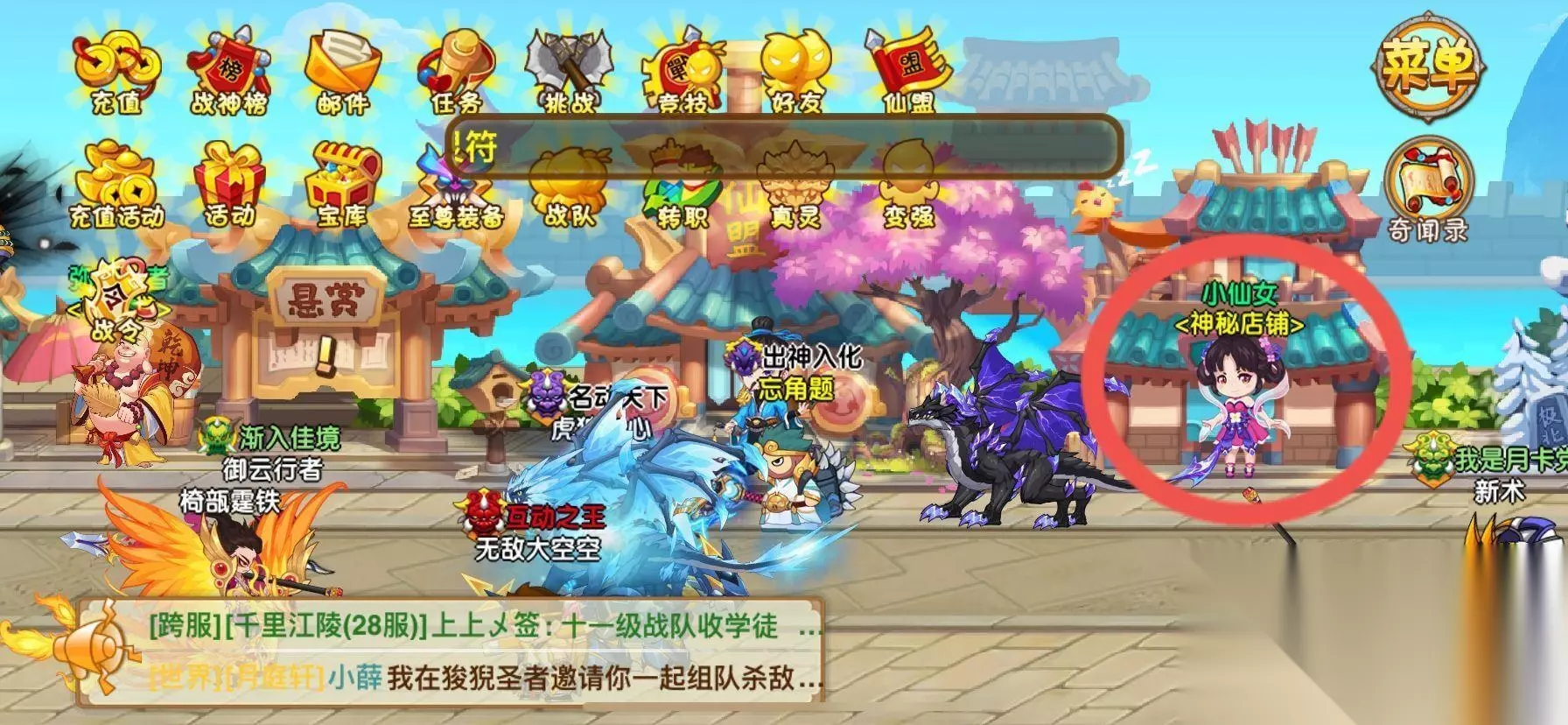 造梦西游ol里面最快获得檀木的方法就是去神秘商店购买。首先我们在游戏页面找到神秘商店,点击神秘商店。