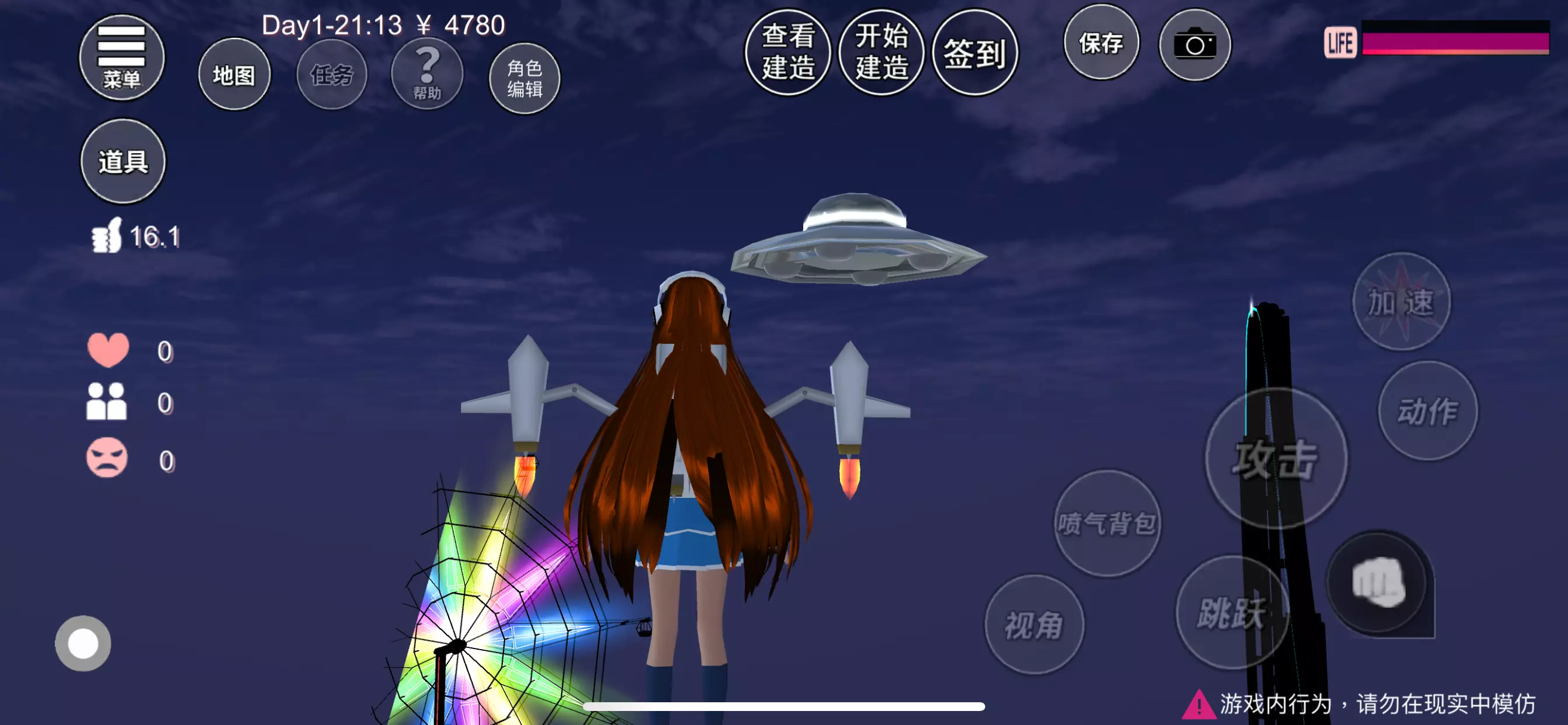 家人们,谁都玩谁玩过音效呀,大半夜的我去天上看看围墙了,看到了一个飞碟