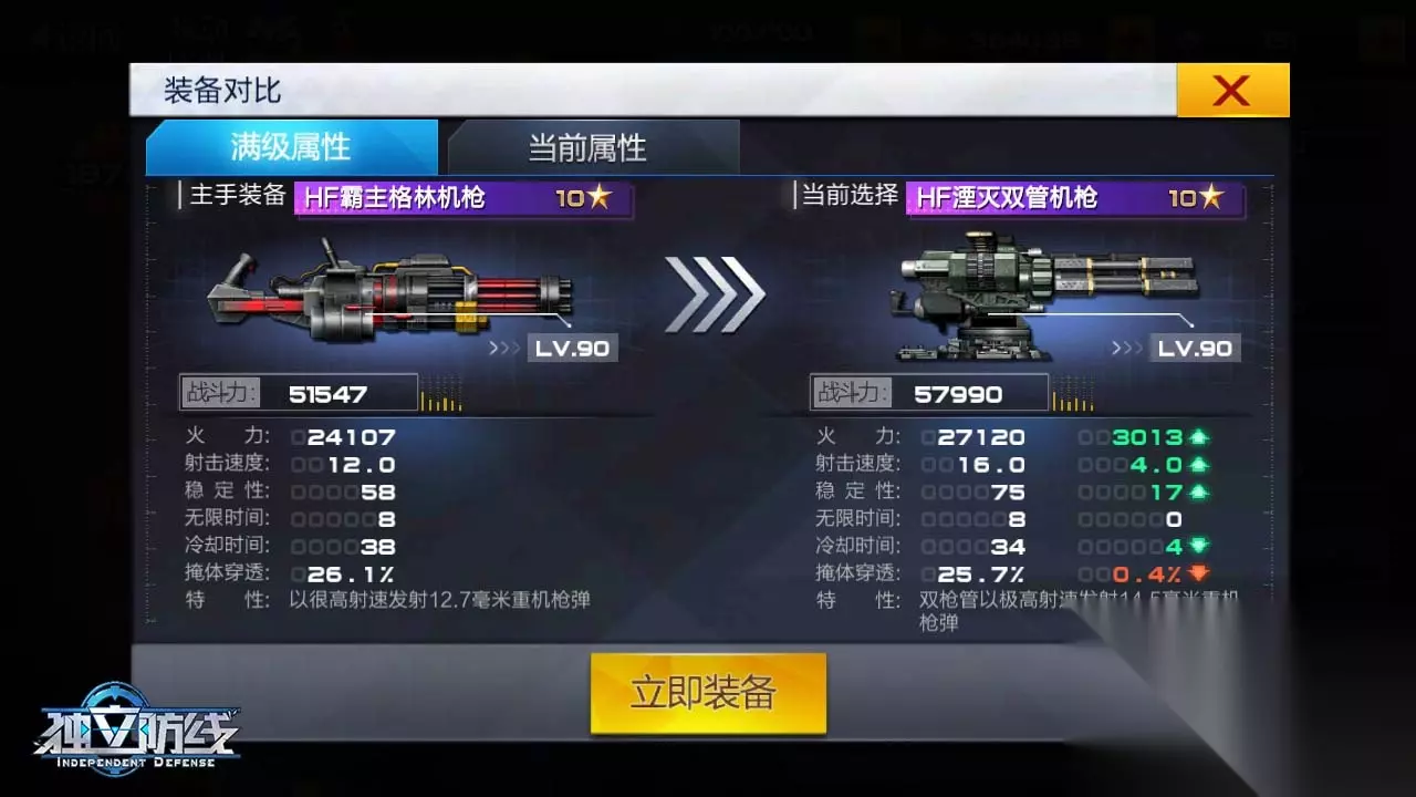 4. 重武器推荐HF灭湮PK或大规模战斗时,重武器不能少。HF灭湮双管机枪射速快,15.5毫米子弹伤害惊人,站桩输出能力一流。