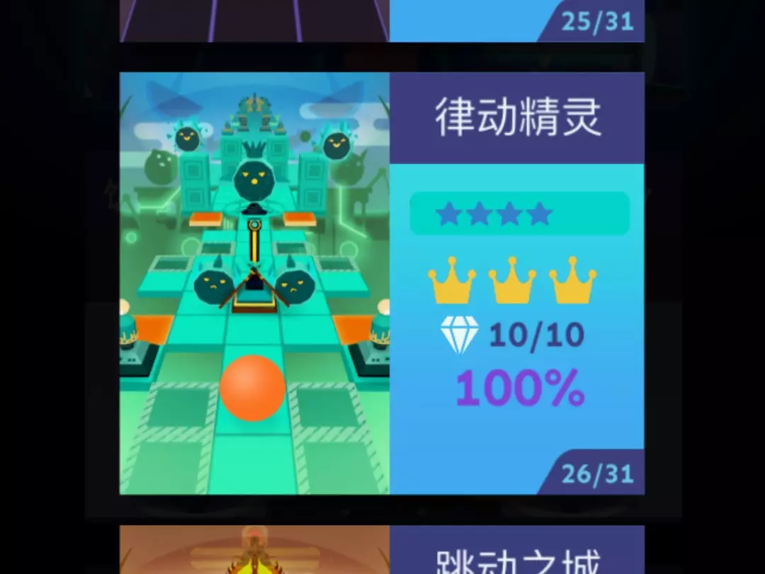 律动精灵 四星较难 很抽象的二冠跟三冠,第二冠思路很好,但是手感非常奇怪,每次划了半天,总是划不过去,第三冠非常逆天,需要旋转跳加背板,不过整体质量还是很高质的…