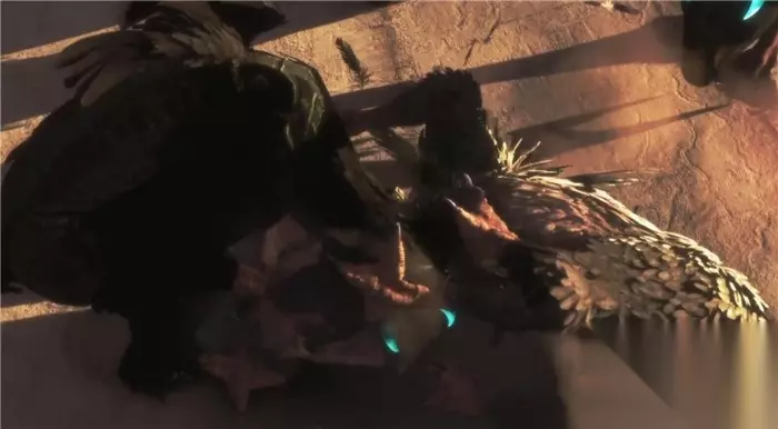 费劲千辛万苦到达巨鹰塔顶部后,这时核心将无数的敌方大鹫呼唤了回来,大鹫(Trico)为了保护男孩遭到了其他大鹫的攻击,尾巴也被扯断了。