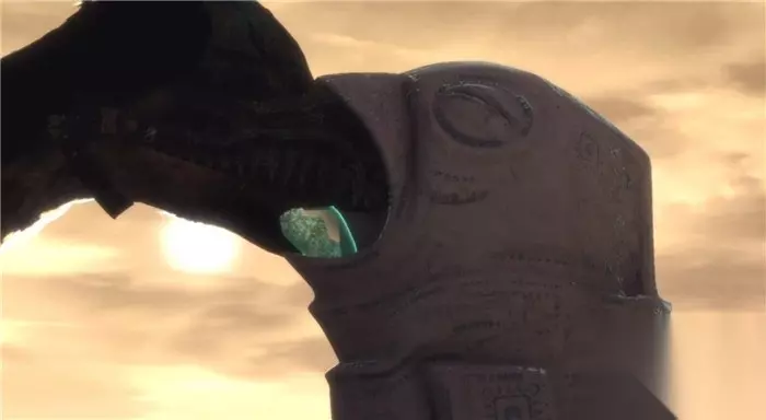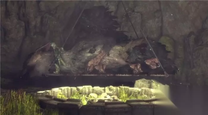 核心被破坏掉之后其他的大鹫也失去了力量不能动弹,奄奄一息的大鹫(Trico)用最后的力量将男孩送回了村庄。