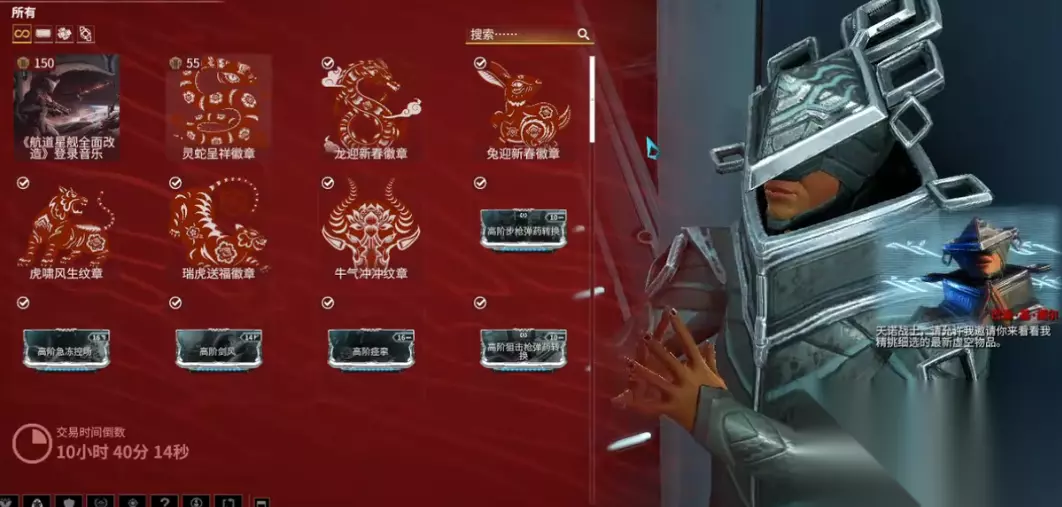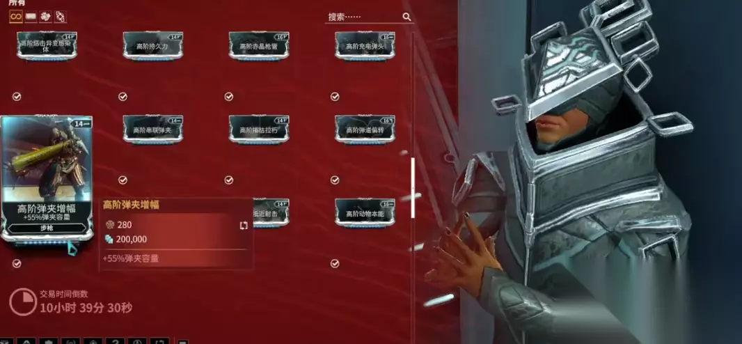 如果你不想全凭运气硬肝,游戏里也提供了直接用资源兑换的途径。最关键的人物就是那位每两周来一次的虚空商人Baro Ki‘Teer。他会带来一堆稀有物品,其中经常包括各种高阶卡,不过你得用虚空币(杜卡德金币)和星币去购买,而且他的商品每次都会换,看中了就得抓紧。加入游戏里的六大集团并提升声望,也可以用赚取的声望值在集团房间的奖励列表里兑换到专属的集团卡,这些卡片能独特地强化特定战甲的技能。