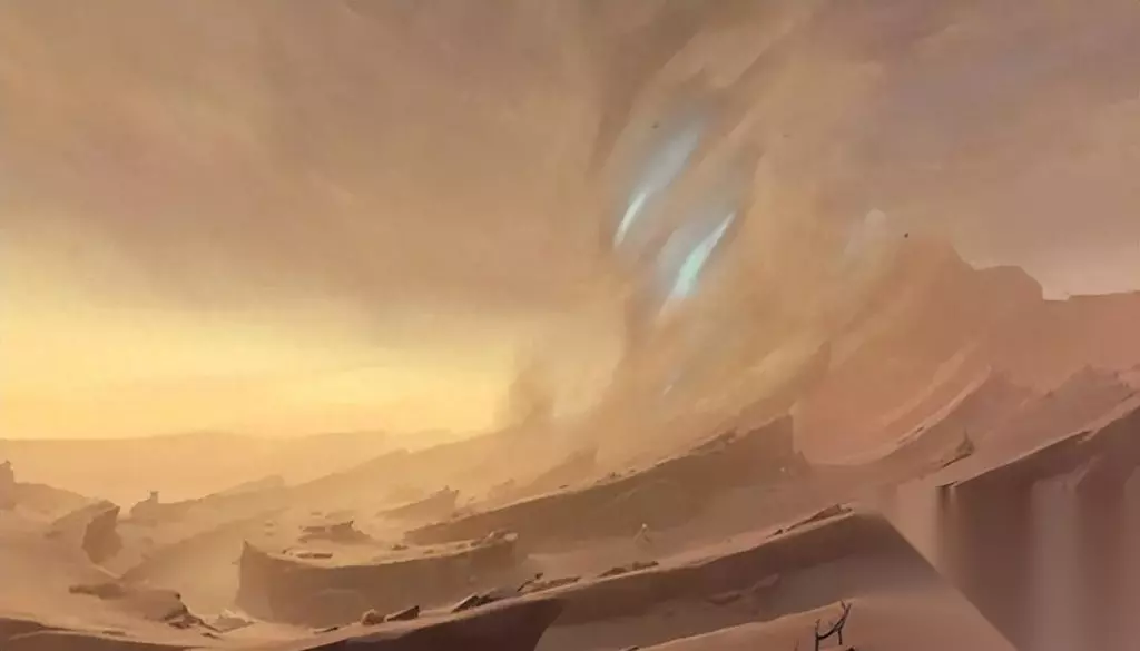 回到正题—— 沙漠地图在3.4版本中更新,开放位于北部的全新地区——千壑沙地。 玩家需要在漫天的沙尘暴和新BOSS沙虫的双重挑战下,寻找到时间永恒静止的绿洲。